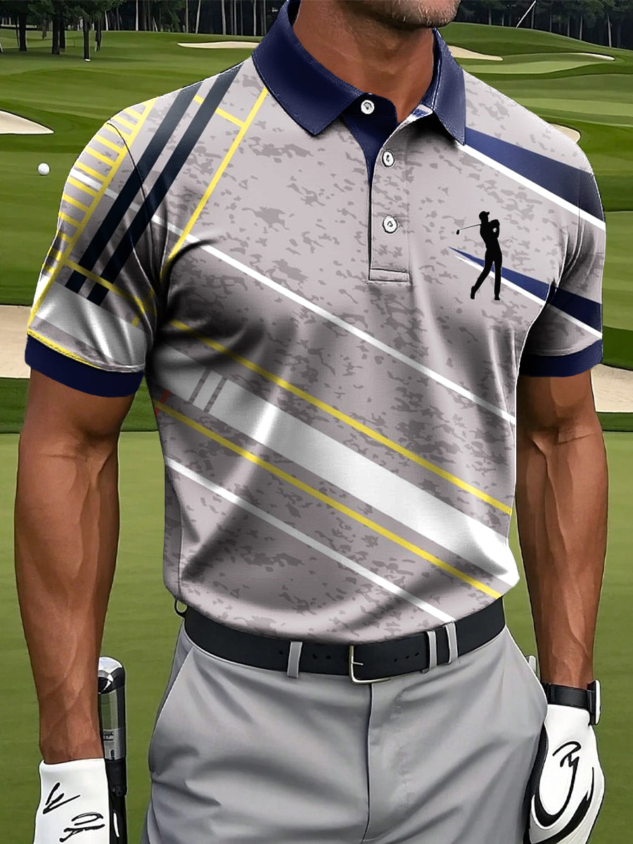 Мъжки абстрактни неправилни линии изкуство печат случайни бизнес поло риза