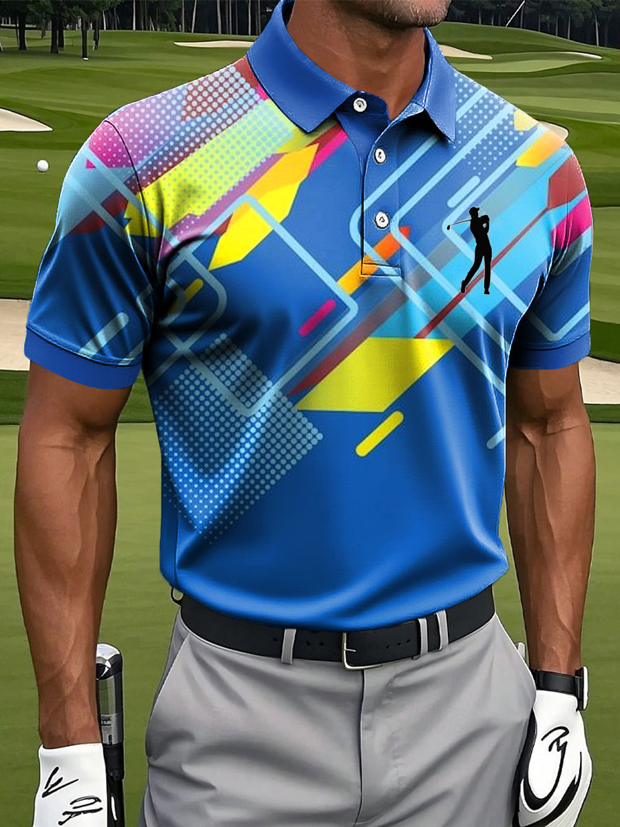 Мъжки изкуство колоритен абстрактен геометричен печат случайни бизнес поло риза