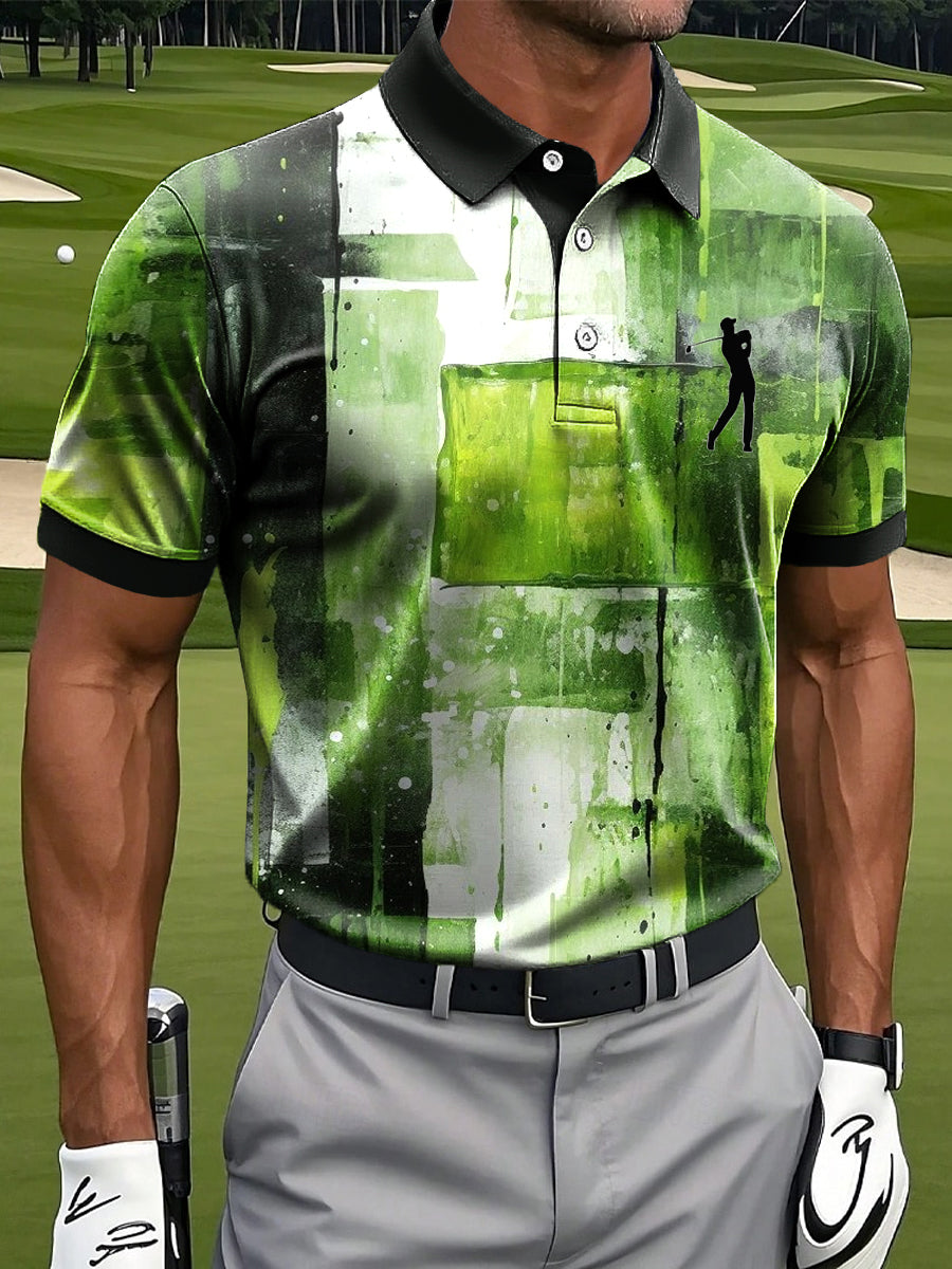 Мъжки класически геометричен цвят графити изкуство печат случайни бизнес поло риза