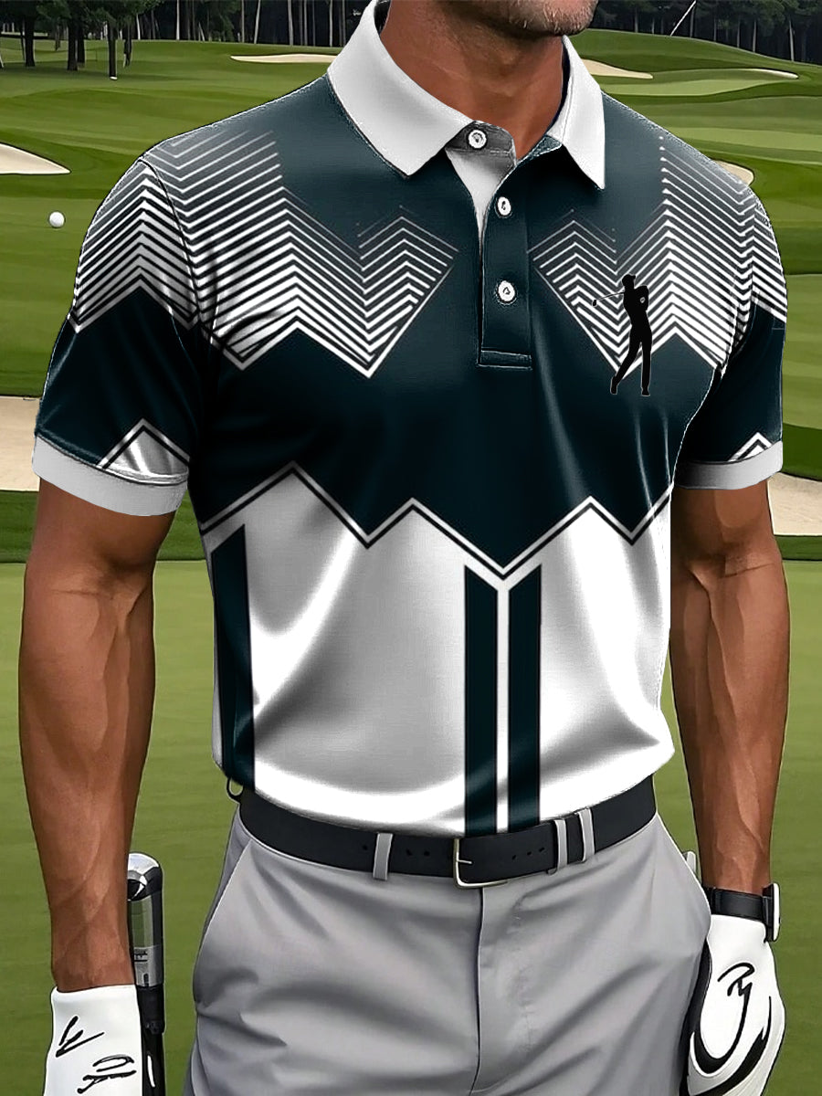 Мъжки класически градиент линия геометричен изкуство печат случайни бизнес поло риза