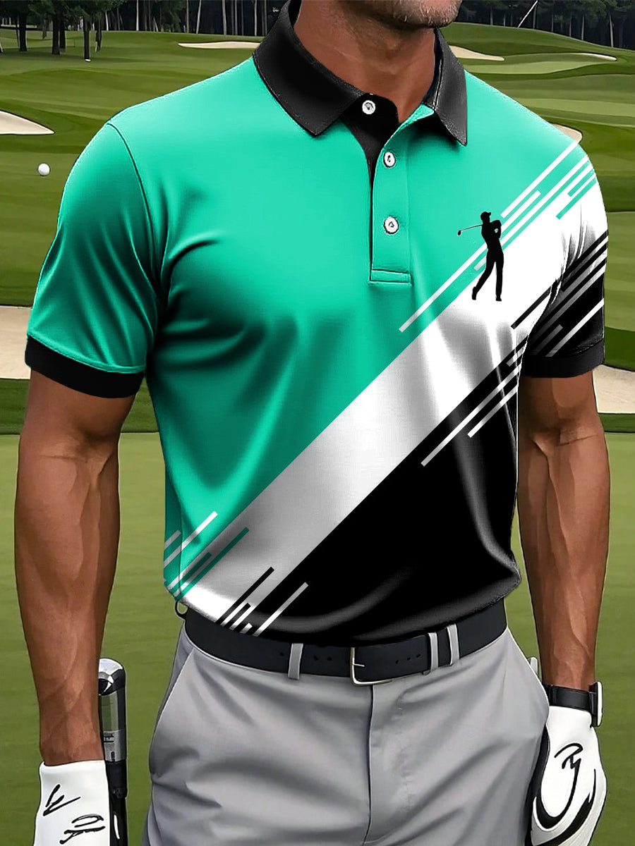 Мъжки класически цвят сплайс печатни случайни бизнес поло риза