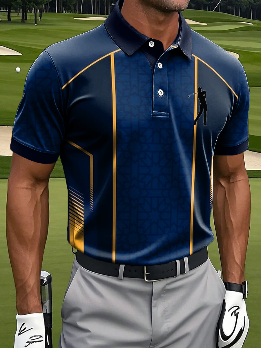 Мъжки ретро геометрична пачуърк печатни случайни бизнес поло риза