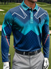 Мъжки ретро градиент линия изкуство печат случайни бизнес дълги ръкави поло риза