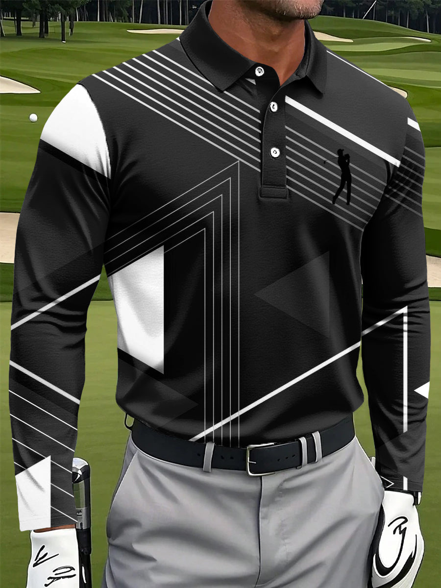 Мъжки ретро линия геометричен печат случайни бизнес дълги ръкави поло риза