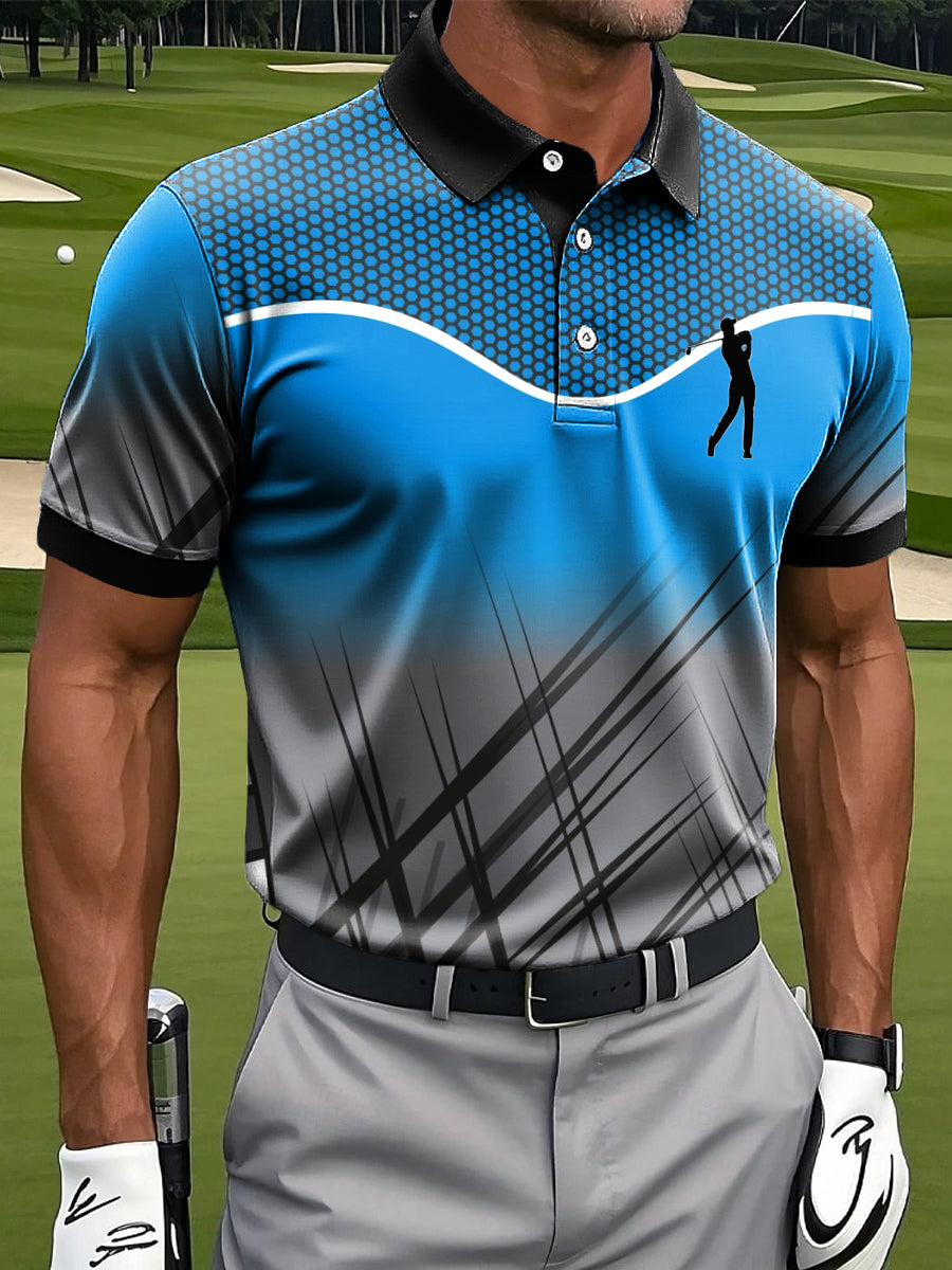 Мъжки ретро линия полка точка сплитане печатни случайни бизнес поло риза