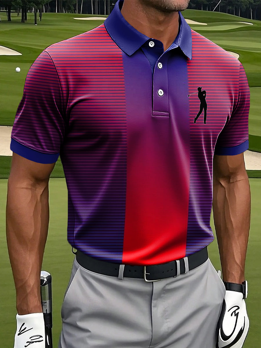 Мъжки ретро цветни ивици геометрични изкуство печат случайни бизнес поло риза