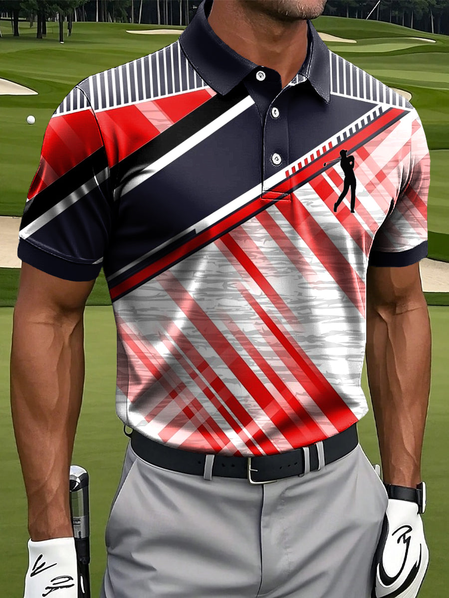 Мъжки ретро цветни райета карирана артистичен печат случайни бизнес поло риза