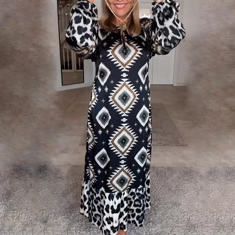 Пакетът включва: 1: 1* Женска бохемска ежедневна рокля с дълги ръкави с щампа