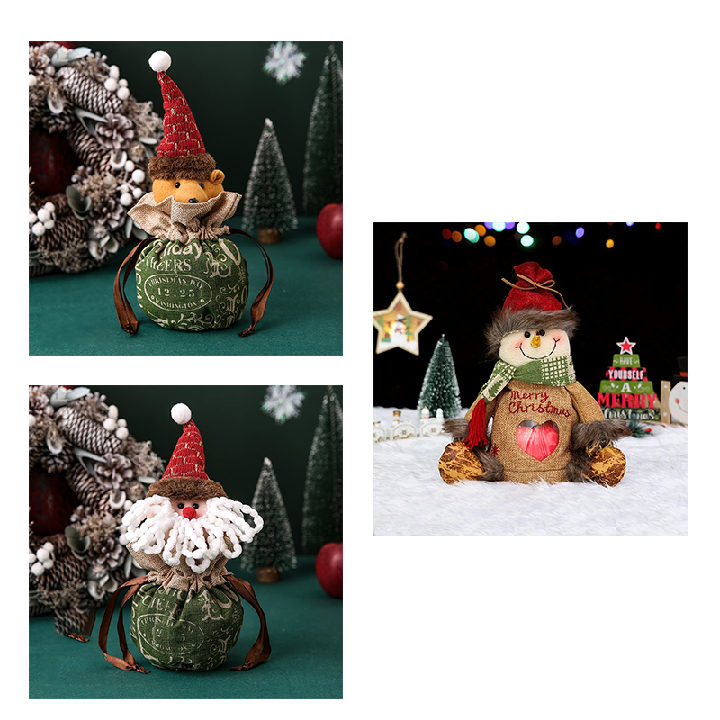 Изработени от здрав плат, добре изработени, цветни и красиви. Тъй като коледните подаръчни торбички са издръжливи, можете да ги използвате дълго време. Могат да се поставят в дома ви, на трапезната маса, на масата за хранене и др.