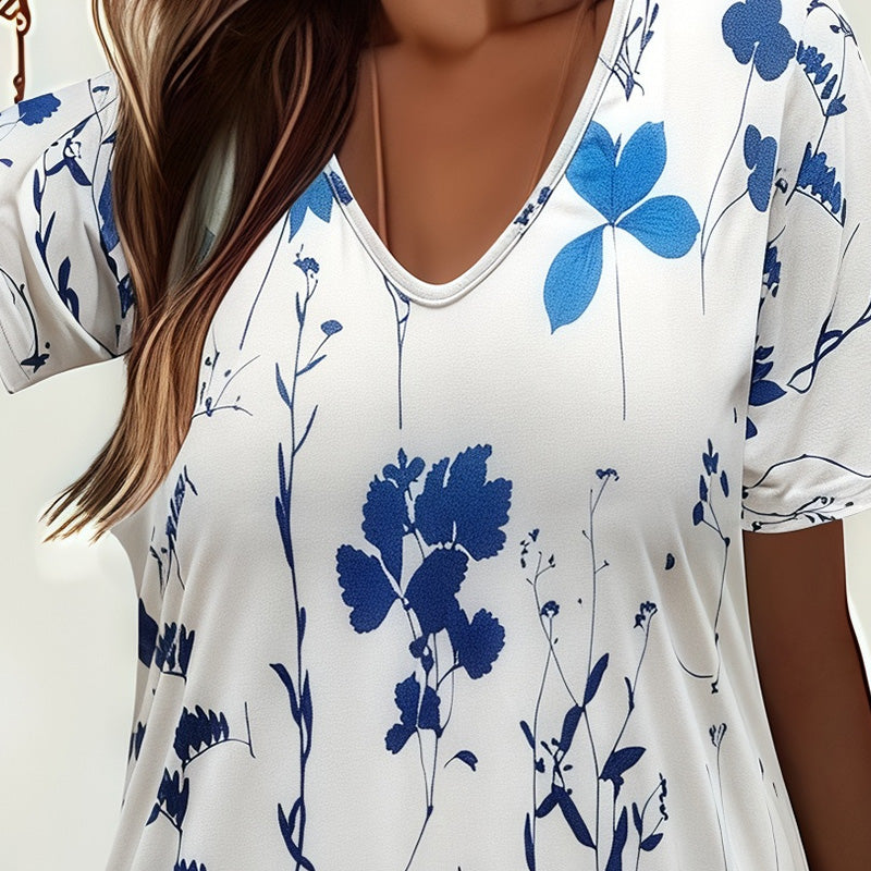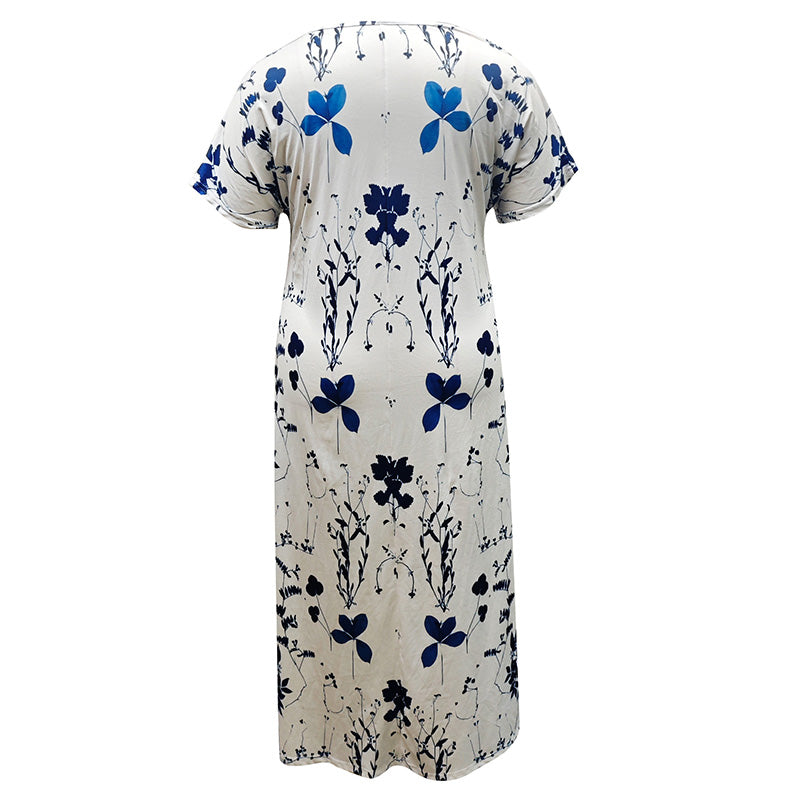 Пакетът включва: 1*Женски ежедневен флорален печат рокля с къс ръкав
